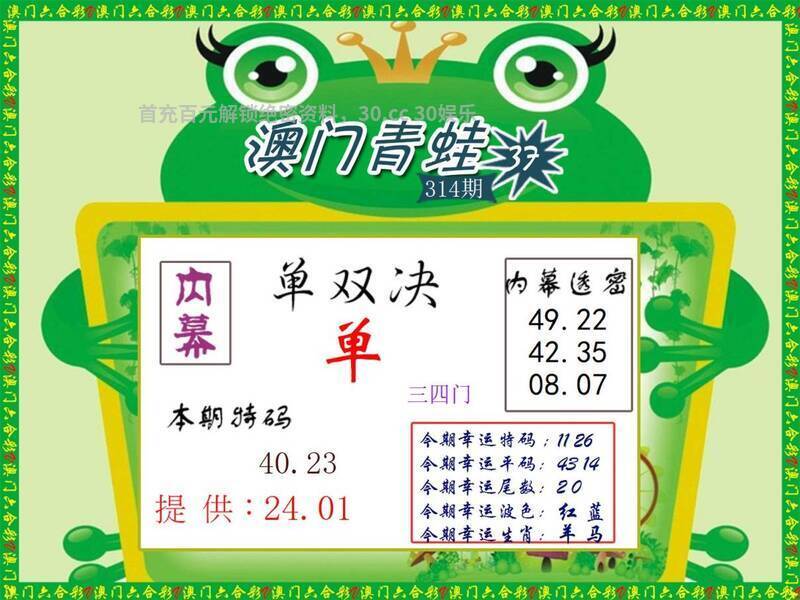 314期:Ω前后两肖┣前肖+鸡猴┫开:羊23
